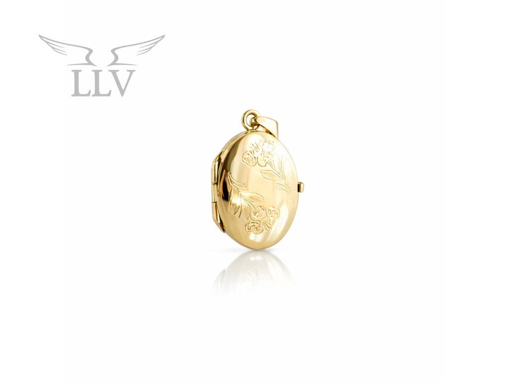 Zlatý prívesok medailónok zdobený kvetmi LLV22-GP094