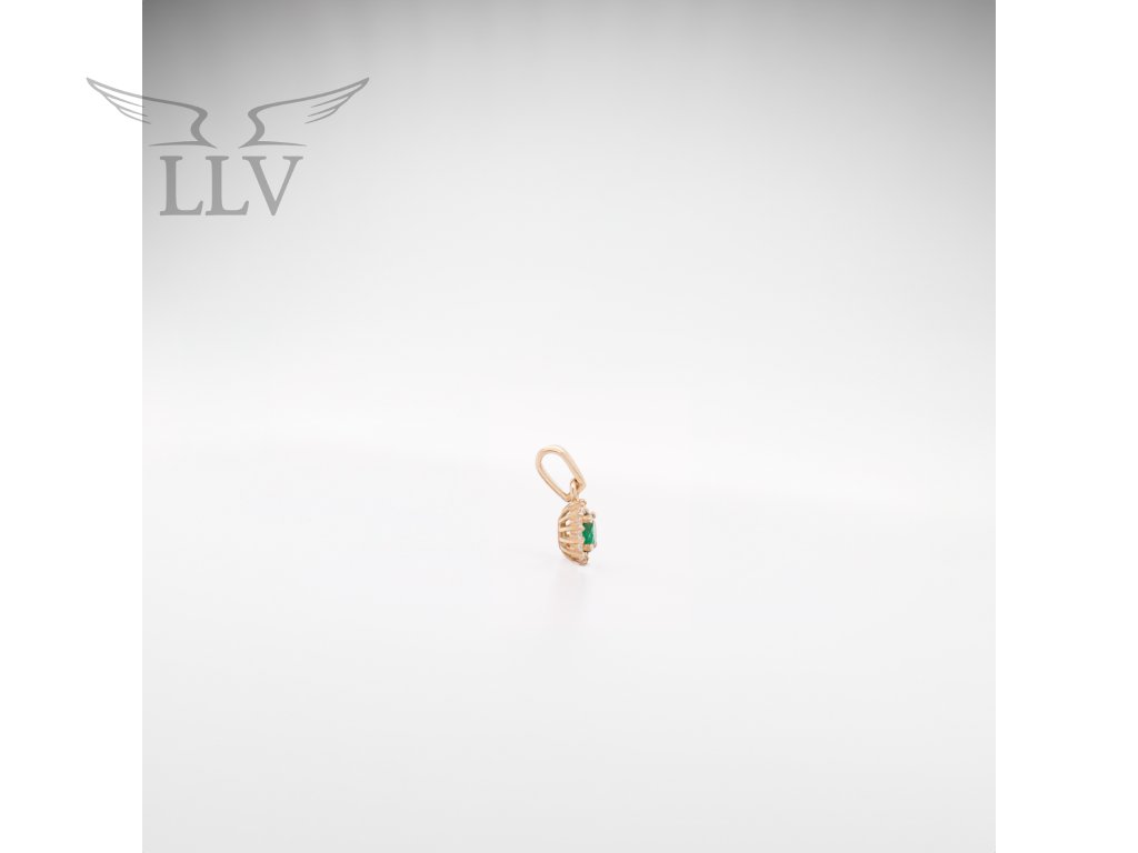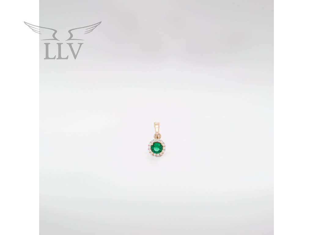 Dominantou prívesku zo žltého 14kt zlata s lesklým povrchom je farebný zirkón vybrúsený do kruhu, ktorý má príjemný sýto zelený odtieň. Okolo nej sú vkusne osadené číre zirkóny, ktoré svojou iskrou dodávajú šperkom eleganciu. Pôsobivá kombinácia žltého zlata, zeleného kameňa a čírych zirkónov vás uchváti!