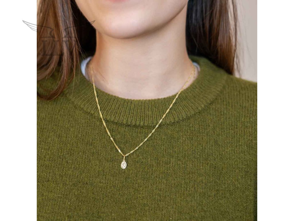 Symbolický prívesok je vyrobený zo žltého 14kt zlata v hladkej povrchovej úprave. Šperk je oválneho tvaru, uprostred je gravírovaním vyobrazená Panna Mária. Vďaka minimalistickému prevedeniu je tento šperk veľmi moderný a neprehliadnuteľný. Urobte radosť sebe alebo svojim blízkym týmto symbolickým príveskom, ktorý Vás bude chrániť a sprevádzať celý život.