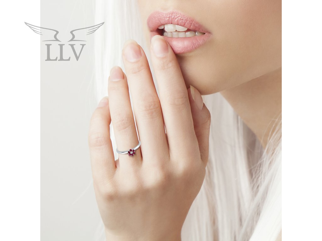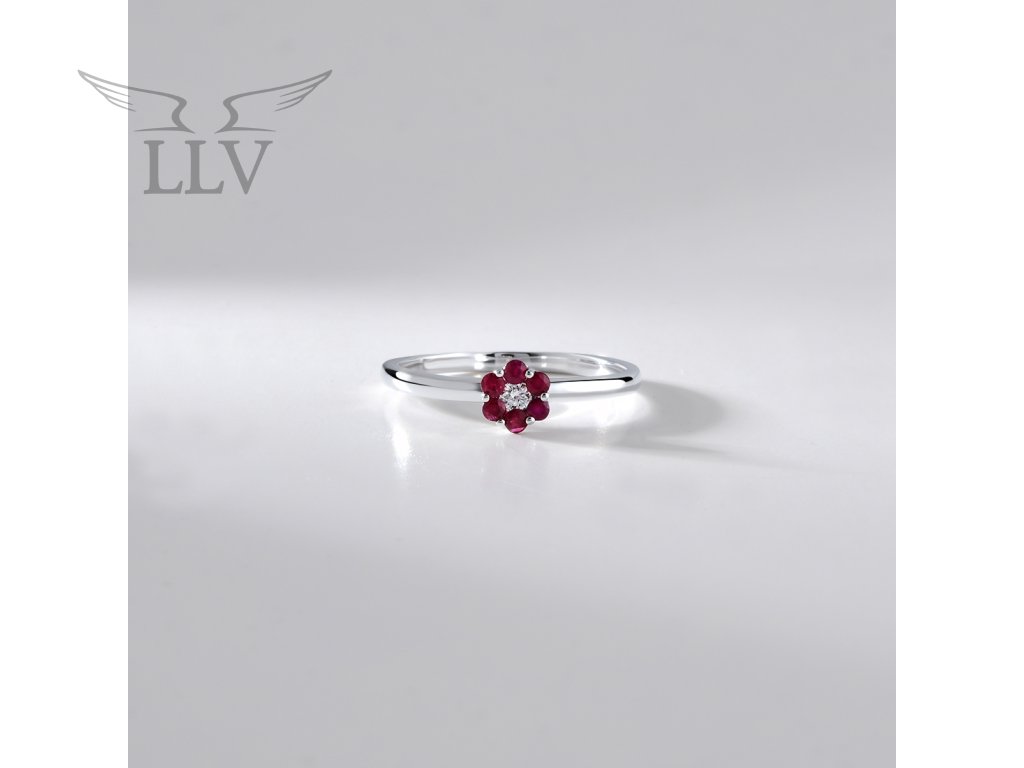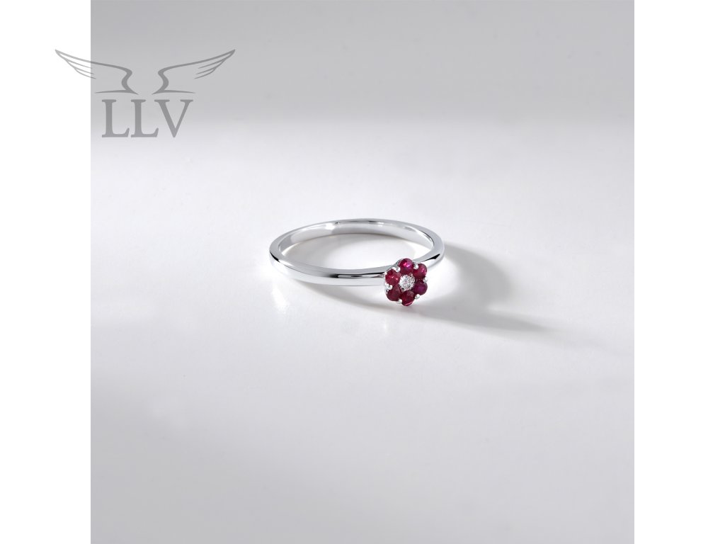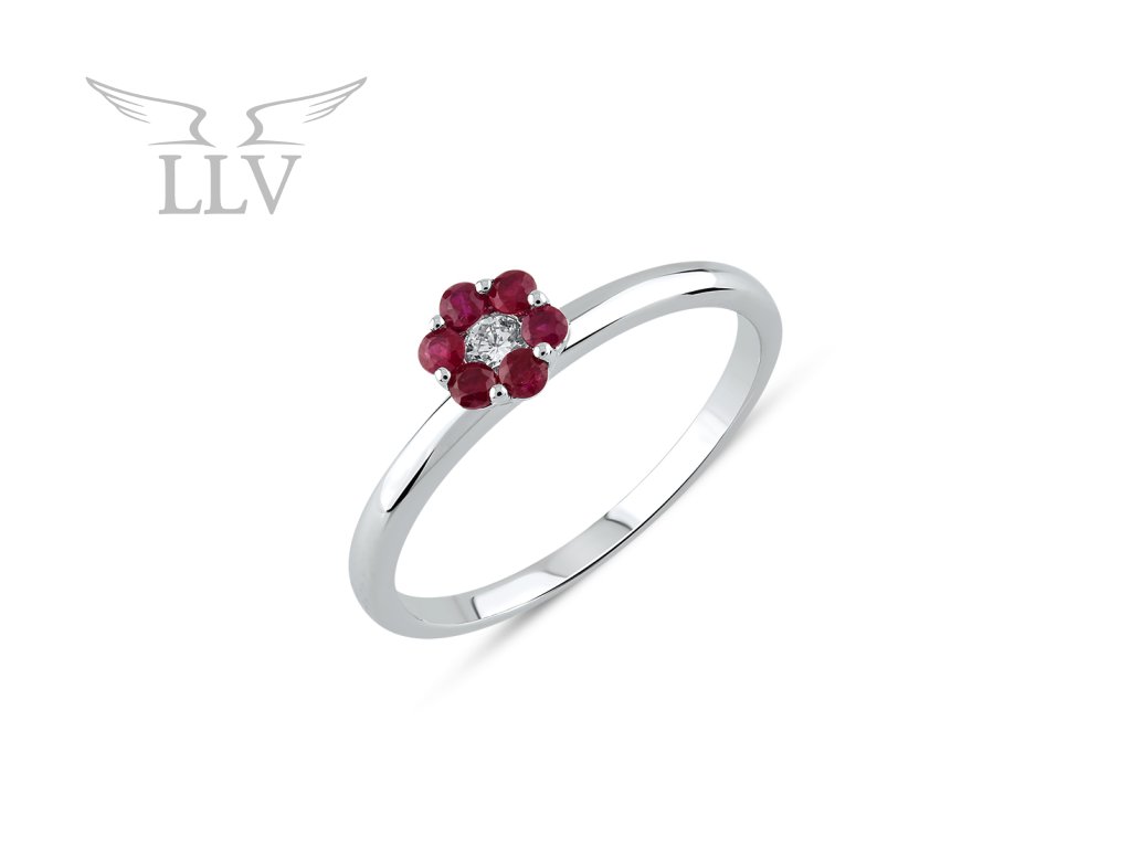 Zlatý prsteň s rubínom a diamantmi LLV59-DR005WR
