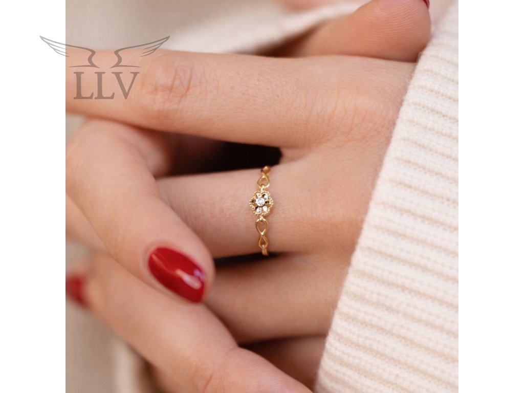 Zlatý prsteň zdobený kvetinou so zirkónom a nekonečnom LLVG-GR002