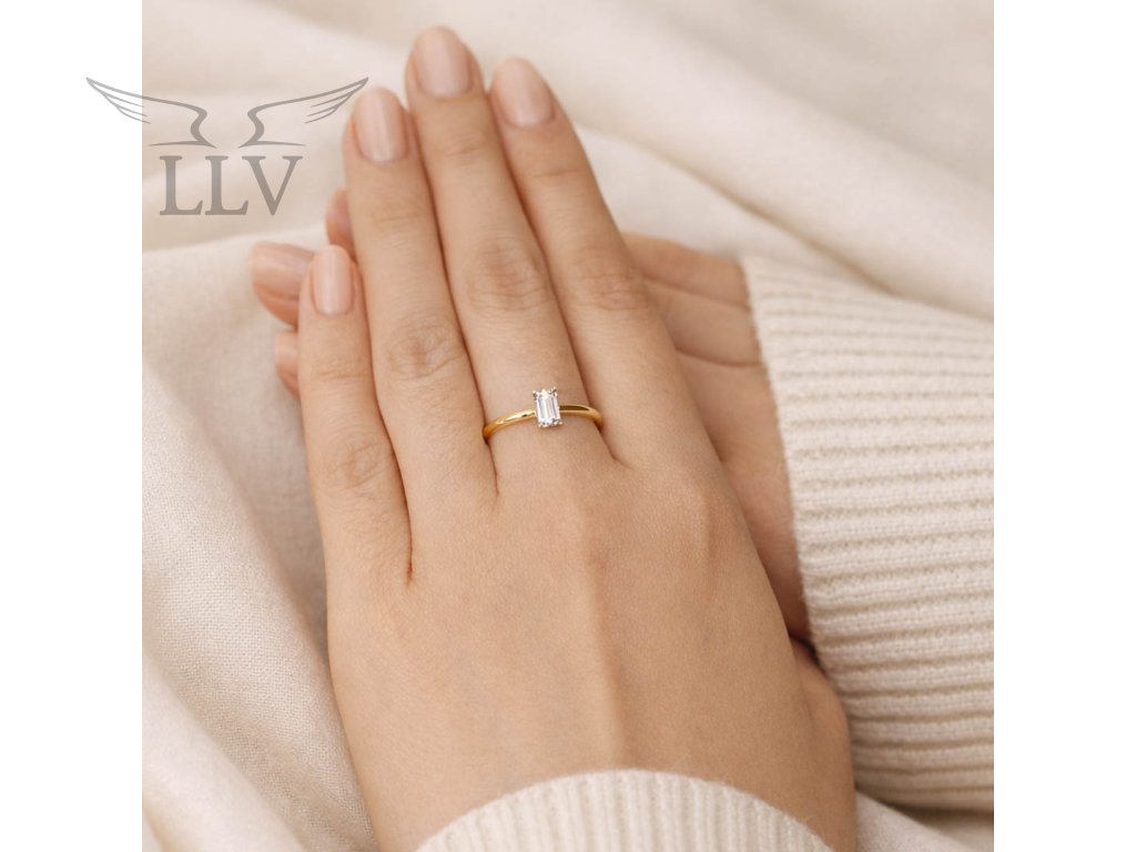 Zlatý prsteň zdobený obdĺžnikovým zirkónom LLV66-GR124