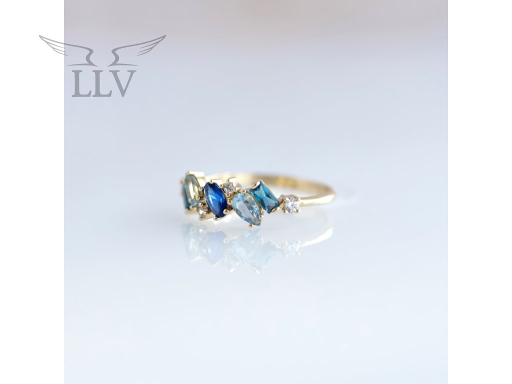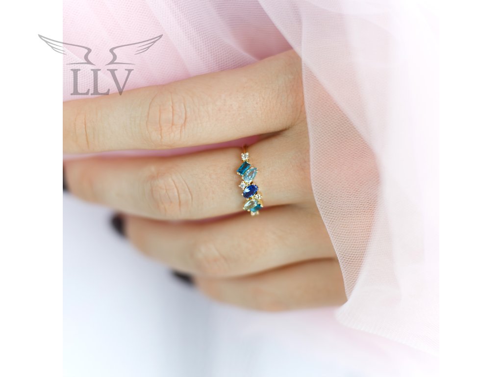 Zlatý prsteň zdobený topazmi a zirkónmi LLV22-GR303ST