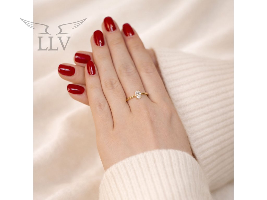 Prsteň zo 14kt zlata zdobený oválnym zirkónom je dokonalým spojením elegancie, čistoty a výrazného lesku. Dominantný oválny kameň pôsobí jemne a zároveň luxusne - jeho tvar krásne preťahuje siluetu prstov a pri každom dopade svetla vytvára očarujúce lesk.