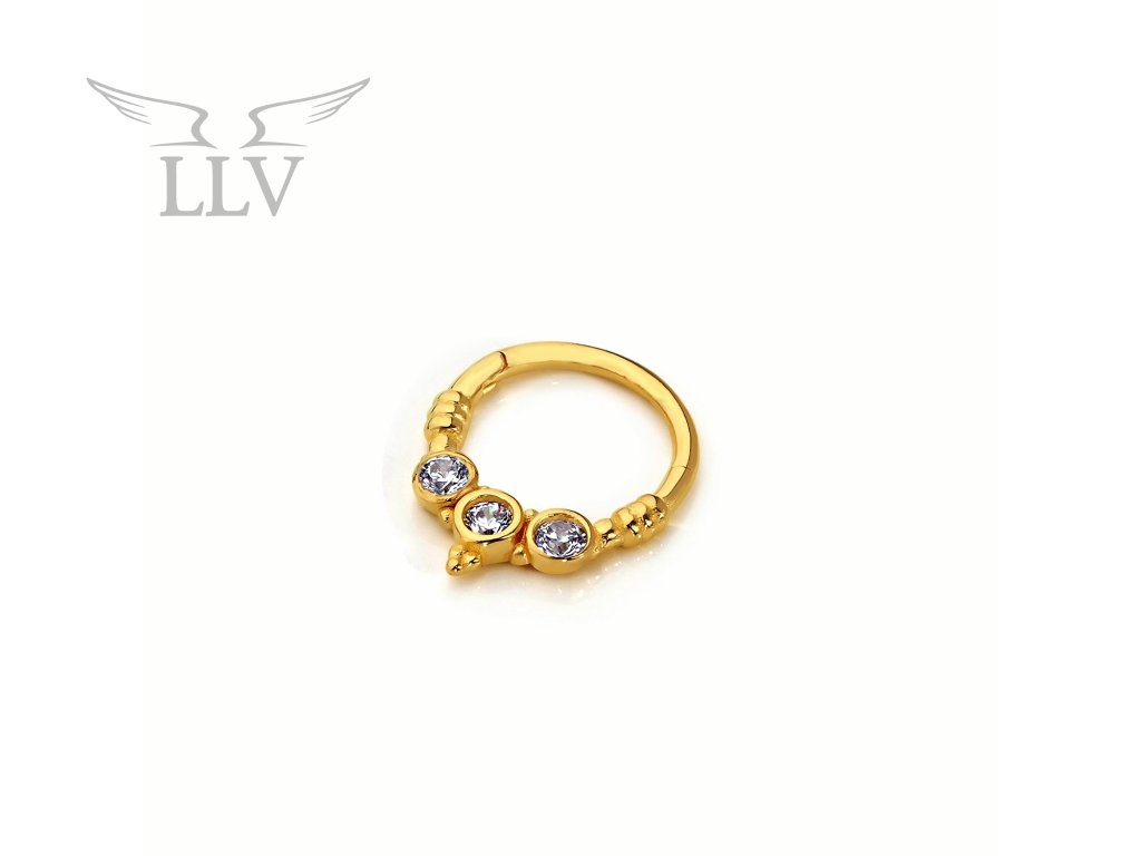 Zlatý zdobený piercing krúžok so zirkónmi LLV92-GPI026SP